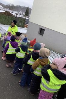 Dann sind wir den ganzen weiten Weg bis zum Zebrastreifen gelaufen. Auch hier üben wir gruppenweise, richtig über den Zebrastreifen zu laufen. Dann ging es zurück in die Kita.
