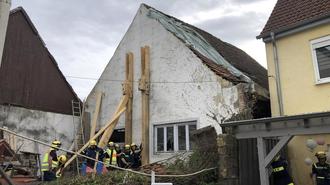 Nach dem Einsturz einer Wand einer Scheune in Heiligenmoschel, wurde die freiwillige Feuerwehr verständigt. Das freihängende Dach drohte die Außenwand eines angrenzenden Wohnhauses massiv zu beschädigen. Nach der Erkundung durch einen Einsatzleiter der Feuerwehr, wurde ein Fachberater des Technischen Hilfswerks (THW) alarmiert. Ein Vertreter der unteren Bauaufsichtsbehörde der Kreisverwaltung und eine THW-Baufachberaterin inspizierten die Scheune. Da das Gebäude akut einsturzgefährdet war, musste es abgerissen werden. Die Feuerwehr unterstützte die Maßnahmen des THW, darunter mit der Drehleiter. Der Einsatz der Feuerwehr dauerte 17 Stunden.