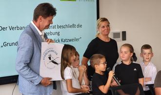 Die Grundschule Katzweiler hat endlich einen Namen: „Grundschule Storchenblick“. Dieser Name wurde vom Verbandsgemeinderat offiziell bestätigt und wird ab sofort das neue Aushängeschild der Schule sein.