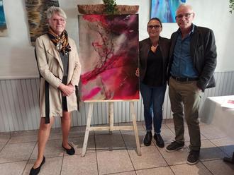 Zur Vernissage am 9. Oktober kamen ca 60 kunstinteressierte Menschen nach Otterberg. Die Organisatorin Gisela Eichler begrüßte die Gäste und lud sie ein, die beeindruckenden Bilder bei einem Glas Sekt auf sich wirken zu lassen. Das künstlerische Schaffen seiner Frau beleuchtete im Anschluss der Ehemann der Künstlerin, DJ Sebster begleitete die Ausstellung mit dazu passenden, modernen Klängen.