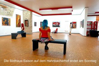 Am Sonntag beenden die Krügers auf dem Hahnbacherhof bei Schallodenbach ihre Bildhaus-Saison. Von 11.00-19.00 Uhr ist geöffnet. Noch einmal sollte man bei angenehmer Witterung den Naturpark in leuchtender Herbstfärbung zum Spaziergang nutzen, durch die Galerie streifen und es sich bei Kaffee und Kuchen gut gehen lassen. Zum Ausklang spielt Sven Ruppert am Nachmittag für die Gäste.