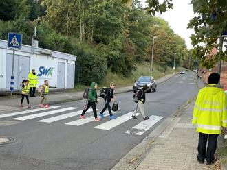 Damit unsere Schulkinder sicher zur Schule und wieder nach Hause kommen, leisten alle ihren Beitrag. In der Schule wird das richtige Verhalten im Verkehr thematisiert und eingeübt. Vielen Dank an alle Eltern, die den Schulweg mit ihren Kindern fleißig geübt haben und nun bereit sind ihre Schützlinge in die Selbstständigkeit zu entlassen. Vielen Dank auch an unsere Verkehrssicherheitsbeamtinnen, die die Kinder beim Erlernen des richtigen Verhaltens als Fußgänger unterweisen. Danke an die SWK, die unsere frisch eingeschulten Erstklässler/innen mit Warnwesten ausgestattet haben.