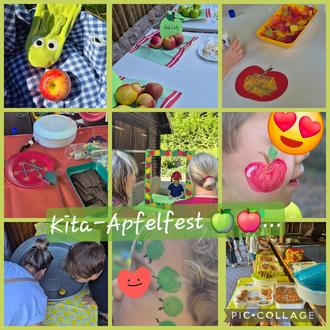 Die Krönung unserer Reise durch die Apfelzeit war unser tolles Apfelfest, das wir gemeinsam mit den Eltern in der Fuchsdelle feierten. Nach der Begrüßung und dem gemeinsamen, schwungvollen Bewegungslied von der „Apfelernte“ gab es unzählige Stationen zum Thema „Apfel“, liebevoll und kreativ gestaltet von den Erzieherinnen der Kita. Das Angebot beinhaltete Basteln und Gestalten, einen Bewegungsparcours, Kinderschminken, eine Fotostation sowie eine ApfelVerköstigung. Am Fingerfood-Buffet der Eltern konnte man sich zwischendurch stärken.