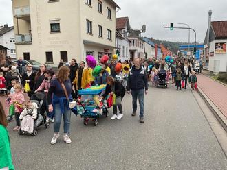 Nach einer zuvor regnerischen Woche bescherte uns das Wetter am Kerweumzug, den 28. September zwar trübes, aber ruhiges Wetter. Wir waren froh, als Kita daran teilnehmen zu können. Hochmotiviert und gut gelaunt trafen sich die Kita-Kinder mit ihren Eltern und den Erzieherinnen der katholischen Kita Otterbach auf dem Penny-Parkplatz, wo es kurze Zeit später auch schon losging.