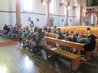 Heute, am 10.10.22, hat uns Christiane Kleemann-Gegenheimer (Pastoralreferentin) in die Kirche eingeladen, um mit uns einen Wortgottesdienst zum Thema Erntedank zu feiern. Eröffnet wurde dieser mit dem Lied: „Lasst uns miteinander, singen, beten, loben den Herrn.“ Die Kinder erfuhren von der Handpuppe Lotta wie wichtig Sonne, Regen und Menschen sind, damit ein Apfelbaum überhaupt Früchte tragen kann. Vor dem Altar war festlich mit Obst, Gemüse und Getreide geschmückt und Frau Kleemann-Gegenheimer war überrascht, wieviel die Kinder entdeckt haben und benennen konnten. Sie erzählte die Geschichte von den fünf Broten und den zwei Fischen und passend dazu sangen wir unser Gebetslied. Unsere Vorwitznasen hatten ihren ersten“ offiziellen Auftritt“ und durften die Fürbitten vortragen. Abgerundet wurde der Wortgottesdienst mit einem Tanz zu dem Lied: „Ich bin der Baum des Lebens.“ Zum Abschluss durfte sich jedes Kind einen Apfel mit nach Hause nehmen. Wir danken Frau Kleemann-Gegenheimer für diese schöne und gelungene Feier.
