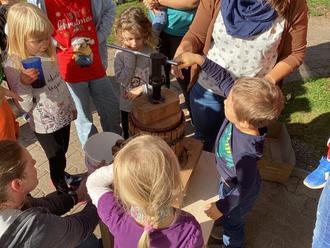 Unsere Naseweise durften vorab Äpfel sammeln und haben zusammen aktiv beim Apfelpressen mitwirken und den frischen Saft probieren können.