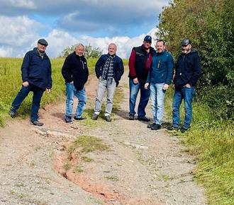 Die Starkregen der vergangenen Jahre haben sichtbare Spuren auf den Feldwegen in der Gemarkung Katzweiler hinterlassen. Auf einer Zugwagentour mit dem Schlepper führte Ortsbürgermeister Sven Rheinheimer die Mitglieder des Wegebauausschusses am Sonntag 15.10.2023 durch das großflächige Feldwegenetz der Gemeinde. Ziel war es gemeinsam mit den Mitgliedern Otto Hach, Jan Bauspieß, Karlheinz Raab, Dieter Kunz sowie mit den Beigeordneten Eric Schmidt und Thomas Preis einen Reparaturkatalog mit Prioritätenliste aufzustellen. Mit Beginn November, also nach der Brut- und Nistzeit, können bereits Heckenschnitt und Baumfräsarbeiten beginnen. Ein besonderer Schwerpunkt werde auf die Reparatur und Neuverlegung von Querrinnen sein. Mühlwoog, Kreuzweg und Fuchsloch stellen mit weiterreichenden Baumaßnahmen eine besondere Herausforderung dar. Insgesamt am Wegenetz wird die gesamte Wasserführung in die Sanierung mit einbezogen. Abflussgräben von Gestrüpp befreien, das Grabenbett neu fassen, Wegränder befestigen und Schlaglöcher beseitigen gehören mit zum Programm. Die Jagdgenossenschaft, vertreten durch Dieter Kunz, sicherte wie in der Vergangenheit ihre finanzielle Unterstützung zu. „ Ohne diese Unterstützung“ so der Bürgermeister „wäre die notwendige Unterhaltung des Feldwegenetzes allein aus dem Gemeindebudget nicht möglich.“