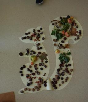 Am Ende der Geschichte, durften alle Kinder ein großes Eichhörnchen mit gesammelten Naturmaterialien beschmücken. Es war ein wirklich gelungenes Fest und hat allen viel Freude bereitet!