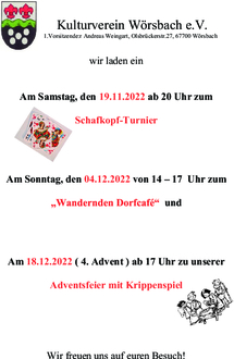 Alle Veranstaltungen finden im Bürgerhaus in Wörsbach statt.