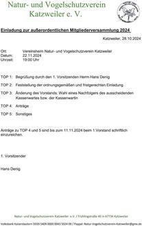 Anträge zu TOP 4 und 5 sind bis zum 11.11.2024 beim 1. Vorstand schriftlich einzureichen.