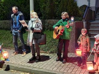 Dann zogen ca. 80 Teilnehmer durch die Straßen des Ortes und machten an Lichter geschmückten Häusern Halt, um mit Liedern und der Gitarrenspielerin Esther Mieves den Umzug zu gestalten.