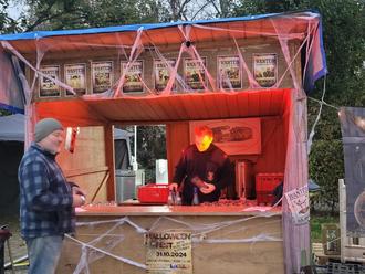 Auch Claudia Fürschke als Vertreterin der Phönix Otterbach und Alex Franz von der Alex Lounge, sieht man zwei Tage rund um den Dorfplatz wimmeln: Alles Notwendige wird mühevoll mit Bussen und Hängern herbeigeschleppt, so dass es den Halloweenfans an nichts fehlt. Leckeres Essen und Cocktails jeder Art sorgen für das leibliche Wohl der Gäste.