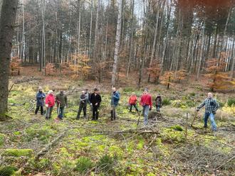 Eine Teilnehmergruppe bei der Baumpflanzaktion der BI Pro Otterberger Wald zusammen mit dem Forstamt Otterberg