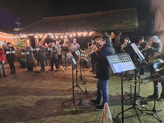 Nach einer kurzen Ansprache durch den 1. Vorsitzenden des Männergesangvereins, Herrn Paul Schuster, sangen die Männer stimmungsvolle Lieder und im Anschluss musizierte nochmal der Musikverein mit englischen Weihnachtsliedern.