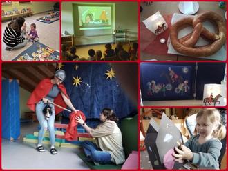 Die guten Taten des heiligen Martin konnten die Kinder im Kindergartenkino bei einem selbstproduzierten Film bestaunen. Wie im echten Kino, gab es Eintrittskarten und leckeres Popcorn.