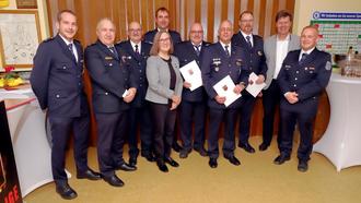 Im Rahmen der Feierlichkeiten wurden drei Kameraden für ihre jeweils 35-jährige Mitgliedschaft besonders geehrt: Hans Arnold, Peter Maue und Danny Schulz erhielten das Goldene Feuerwehr-Ehrenzeichen des Landes Rheinland-Pfalz. Die Ehrungen nahm Gudrun Heß-Schmidt vor.