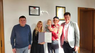 Eine Familie in unserer Verbandsgemeinde hat ihr siebtes Kind bekommen. Damit übernimmt der Bundespräsident traditionell die Ehrenpatenschaft. Gemeinsam mit Ortsbürgermeister Marco Reschke durfte ich die Urkunde sowie ein Geschenk überreichen.
