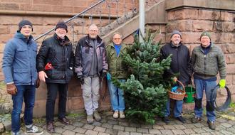 Engagierte Mitglieder des Vereins KulturART und der neue Stadtbürgermeister Jan Hock stellten am 23.11.2024 bei ca. 4 Grad Celsius in der Haupt- und Kirchstraße über 60 Tannenbäume auf.