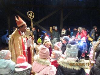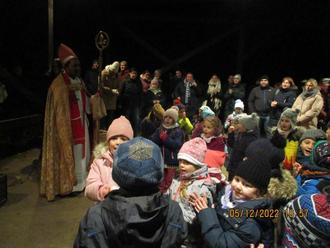 Am Montagabend, den 5.12.22, machten sich alle Kitakinder zusammen mit ihren Familien auf den Weg in den Wald, um den Bischof Nikolaus zu suchen. Ziel war der Platz des Musikvereines im Kumb. Die Freude war groß und schnell gesellten sich alle Kinder um den Nikolaus, der bereits auf die Kinder wartete. Nach dem Begrüßungslied hatten die „Vorschulkinder“ noch ein Gedicht und ein Lied vorbereitet und die Kinder aus dem Tanzprojekt tanzten ihm etwas vor. Zum Abschluss hatte der Bischof Nikolaus für jede Gruppe einen Korb mit gefüllten Nikolausstiefelchen, die er an die Kinder verteilte. Vielen Dank an Pfarrer Tomy und an den Musikverein, der uns den Platz zur Verfügung gestellt hat.