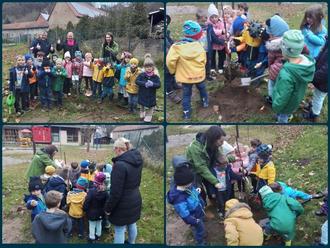 Um dies bereits den Kleinsten unserer Mitbürger:innen zu ermöglichen, hatte der Landesverband anlässlich des Jubiläums unter teilnehmenden Kitas in Rheinland-Pfalz 75 Apfelbäume verlost, und die Kita Niederkirchen gehört zu den glücklichen Gewinnern. Am 12.12. war es dann endlich soweit: der Apfelbaum wurde gepflanzt. Die Vorschulkinder der Kita waren aufgeregt und tatkräftig dabei und freuten sich mit ihren Erzieher:innen über die Möglichkeit zur Mitwirkung und den neuen Baum auf dem Kitagelände.