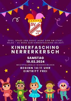 Niederkirchen - Nachdem der Kinderfasching in Niederkirchen in den vergangenen Jahren aus verschiedenen Gründen immer wieder ausfallen musste, freut sich der SVN nun, alle jungen und jung gebliebenen Narren zur närrischen Faschingsfete einladen zu können. Das bunte Treiben beginnt am Samstag, 10. Februar 2024 um 14:11 Uhr in der Westpfalzhalle.