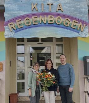 Nun möchte sie sich auf eigenen Wunsch neuen beruflichen Herausforderungen widmen. Ortsbürgermeister Sven Rheinheimer und die Leiterin der Kita, Frau Susanne Edinger, würdigten auch die gute Zusammenarbeit mit der Elternschaft. Mit einem Blumenstrauß und einem kleinen Präsent bedankt sich die Gemeinde für das erzieherische Engagement verbunden mit den besten Wünschen für die Zukunft.