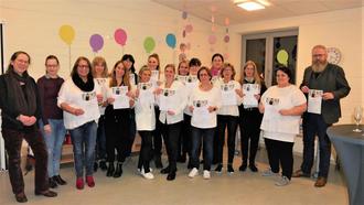 In einer kleinen Feierstunde durften wir eine Kiste unter dem Motto „Blühe dort auf, wo Gott Dich hingepflanzt hat“ auspacken. Darin waren virtuelle Glückwünsche vom Diakonischen Werk und von der evangelischen Landeskirche der Pfalz. Nach der Zertifikatsübergabe von der Referentin Heike Huf an die Leiterin der Kita Michaela Wohlwend für die Kita und die Einzelzertifikatsübergabe an alle Teammitglieder gratulierte für die Kirchengemeinde Pfarrer Benjamin Leppla und bedankte sich bei dem Team für das religionspädagogische Engagement. Die Elternbeiratsvorsitzende Fanny Nalaskovski schloss sich den Glückwünschen an. Mit dem Stöbern in der Kiste, der Freude über Samen, Blütenlichterketten, Impulse, Buchvorschläge und Gedankenaustausch bei einem kleinen Imbiss ging die Feierstunde zu Ende. Mit einem Segenslied und dem Abendsegen von Benjamin Leppla verabschiedete man sich und begab sich stolz auf den Nachhauseweg.