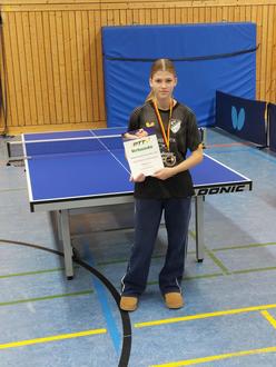 Katharina Eberle lieferte das Highlight des Tages: Zusammen mit ihrer Doppelpartnerin aus Bann holte sie Bronze bei den U15-Mädchen. Im Einzel hatte sie im Viertelfinale ausgerechnet ihre eigene Doppelpartnerin als Gegnerin. Katharina führte schon deutlich, musste sich dann aber im Entscheidungssatz knapp geschlagen geben. Das nächste Mal klappt’s bestimmt!