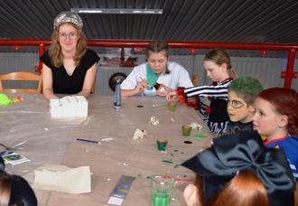 Der Jugendvorstand um Jugendbeauftragten Lucas Weingart hatte sich für die Kinder jede Menge Stationen ausgedacht, die ein echter Astronaut meistern muss. Die als Raumfahrer, Aliens und auch klassisch verkleideten Kinder mussten einen Mondparcours absolvieren und sich auf Alienjagd begeben. Bei der Jagd mussten im Dunkeln Alienfiguren mit Schwarzlicht gefunden werden. Mit dem Züchten von Aliens und dem Basteln von Alienmasken waren auch die kreativen Bereiche abgedeckt. Beim Züchten ging es zunächst nur um das Aussähen von Kressesamen und das Bemalen von Tontöpfen. Ausgebrütet werden die Aliens nun zu Hause. Das Rätseln kam auch nicht zu kurz, eine schwierige Aliensprache musste entschlüsselt werden. Mit dem Raketenbau wurden auch alle kleinen Konstrukteure abgeholt und konnten sich austoben.
