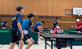 Tom hatte das Pech, in eine schwere Gruppe gelost zu werden, und scheiterte nur knapp in der Gruppenphase. Gabriel hingegen hatte sich vorgenommen, bis ins Halbfinale zu kommen – und das schaffte er auch! In der Gruppenphase spielte er Katz und Maus mit seinem Gegner, und im Achtelfinale ging es gegen stärkere Konkurrenz. Im Viertelfinale wartete ein starker Gegner aus Klingenmünster, aber Gabriel zeigte sein volles Potenzial und siegte mit 3:1. Sein Gegner war so frustriert, dass er sogar seinen Schläger an der Wand zertrümmerte!