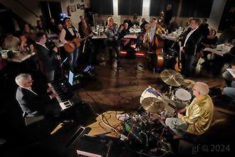 ...bei dem sich die Band inmitten der Gäste plaziert. Sascha Kleinophorst (Capitol Mannheim), Markus Eisel (Saftwerk) und Majka Kiefer (Majkallica) rockten mit ihren Kollegen jahrelang die bekannte Formation Brass Machine. Unterstützt wird die Vocalfront von Musikern, die man unter anderem auch aus dem Mannheimer Capitol kennt.