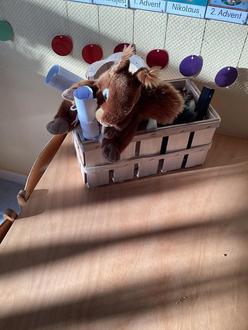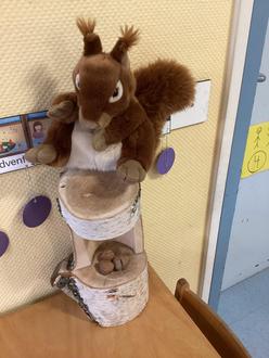 Spielende Kinder, fleißige Handwerker und große Bagger... Dazwischen huscht auch ein Eichhörnchen namens Ernie in unserem Garten herum. Er ist ganz schön traurig. Für unser Provisorium mussten leider zwei Bäume gefällt werden. Deswegen hat Ernie den Kindern einen Brief und eine Bauanleitung für ein Futterhaus gebracht. Er möchte wieder leckere Nüsse und Kastanien einsammeln. Gemeinsam mit den Kindern hat unsere Berufspraktikantin das Futterhaus nachgebaut. Mit Akkuschrauber, Schleifpapier und Zollstock wurde fleißig gewerkelt. Dabei hatten die Kinder die Idee mehr Futterstellen für die Eichhörnchen herzustellen und diese im Mackenbacher Wald zu verteilen. Nach Absprache mit dem Bürgermeister und dem Förster wird dies in naher Zukunft umgesetzt.
