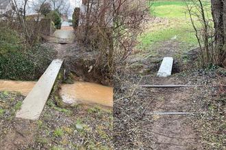 Die Ortsgemeinde ist bereits in der Planung, um einen verkehrssicheren Übergang über den Bach und in der Wiese einen Weg herzustellen.