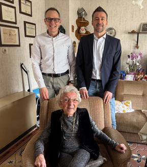 Bei guter Gesundheit feierte am 20. Februar Ingeburg Scheidel ihren 95. Geburtstag. Neben zahlreichen Bekannten und Verwandten gratulierten auch Bürgermeister Ralf Schwarm für die Verbandsgemeinde Weilerbach sowie Ortsbürgermeister Markus Schick für die Ortsgemeinde Rodenbach und überreichten ein Präsent..