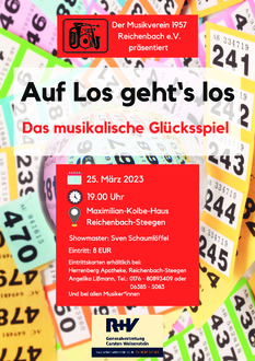 „Auf Los geht’s los - Das musikalische Glücksspiel“ - unter diesem Titel präsentiert der Musikverein nicht nur Musik aus der Welt der Fernsehunterhaltung, sondern lädt zu einer regelrechten Show ein, bei der Sie auch noch satte Gewinne einstreichen können.