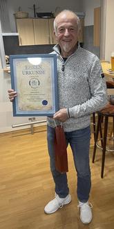 Am vorletzten Dienstag wurde im Rahmen unserer Abteilungsversammlung unser Athlet Anton „Toni“ Reile für besondere Leistungen im abgelaufenen Sportjahr vom Vereinsvorstand mit einer Ehrenurkunde ausgezeichnet. Toni startete letztes Jahr beim „Taubertal 100“ auf der 100 Meilen Strecke. Ein Ultramarathon mit 160 Km Wegstrecke. Nach etwa 120 Km streikte bei unserem Ausdauerathleten der Magen und er musste das Rennen vorzeitig beenden.
