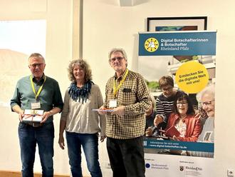 v.l.n.r. DigiBo Benno Pfeiffer , 1. Vors. Elisabeth Weiß , DigiBo Werner Hamm
