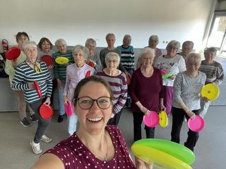 Unter der Leitung von Brigitte Hemm kommen die Damen aus allen Ortsteilen der Ortsgemeinde Reichenbach-Steegen und aus Kollweiler ganz schön in Bewegung. Übungen für Körper, Geist und Seele, sowie Tanzeinlagen halten die Frauen fit. 2005 startete Brigitte Hemm mit 5 Teilnehmerinnen den Kurs und heute schwärmen knapp 20 Frauen von den schönen Turnstunden und den einzigartigen Momenten, die sie schon gemeinsam erlebt haben und den Weihnachtsfeiern, die sie gefeiert haben. Ihr Motto: Jede macht so gut sie kann – so auch die Ältesten im Alter von 87 Jahren. Die Frauentruppe kann echt stolz auf sich sein, was jede für sich leistet. Ich danke den Gymnastikfrauen für die schönen Einblicke und tollen Übungen, die mich ganz schön ins Schwitzen gebracht haben. Wer gerne mit den Frauen mitturnen möchte, kommt einfach dienstags um 14:00 Uhr ans Bürgerhaus. Manchmal werden sogar nach der Turnstunde noch gemeinsam Spiele gespielt. Ich wünsche der Gruppe weiterhin viel Spaß und Freude an der Bewegung miteinander und viele schöne Turnstunden bei bester Gesundheit!