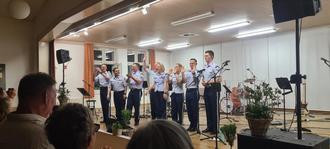Mit mindestens genauso viel Schwung tanzten und wippten die Besucher des Bürgerhauses in Rodenbach in die neue Jahreszeit. Der Musikverein Rodenbach lud zum Frühlingskonzert niemand geringeren ein als die USAFE Rockband. In einem restlos ausverkauften Bürgerhaus hießen die ca. 300 Gäste am 21.03.2025 das Ensemble herzlich willkommen. Es dauerte nicht lange bis die Rhythmen und rockigen Klänge auch in den hinteren Reihen ankamen und für Begeisterung sorgten. Hits wie Toto's "Rosanna", "Don't Stop Believin'" der Band Journey oder auch den bekannten Klassiker "Time After Time" der amerikanischen Sängerin Cindy Lauper wurden mit höchster Professionalität und Präzision dargeboten. In wechselnder Besetzung bewiesen die insgesamt acht Musiker nicht nur an einem Instrument ihr Talent sondern zeigten auch mit ihrem Gesang ihr Können. Natürlich durfte die Rockband nicht ohne eine Zugabe die Bühne verlassen. Die Besucher applaudierten im Stehen bis der letzte Ton verklang.