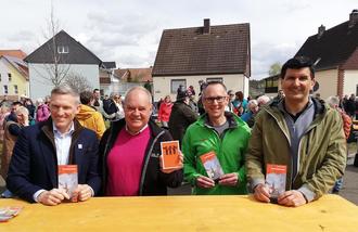 Feierten mit vielen Wanderfreunden die Eröffnung des Osterbubenwanderwegs: Landrat Ralf Leßmeister, Peter Freitag, Bürgermeister Ralf Schwarm und Ortsbürgermeister Daniel Schäffner (von links nach rechts).