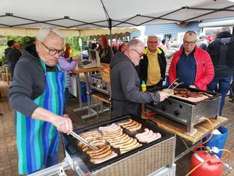 Beim Tennisclub - statt Tennisschläger Grillzange.
