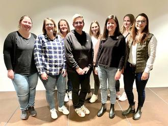 Der neue Vorstand von links nach rechts - Jasmin Wundsam (Schriftführerin), Theresa Schäfer (2. Vorsitzende), Jennifer Lesmeister (Beisitzerin), Claudia Höhne-Wolf (1. Vorsitzende), Maike Lißmann (Beisitzerin), Lisa Schäfer (Kassiererin), Christina Krymskij (Beisitzerin), Sarah Stork (Beisitzerin).