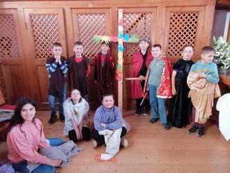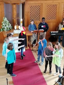 Am letzten Schultag vor den Osterferien feierten die Kinder der Grundschule Mackenbach in der Protestantischen Kirche einen Gottesdienst zu Ostern. Die Kinder der 3. und 4. Klassen erzählten was Hände so alles zu tun haben: halten, wenn jemand fällt; sich die Hand geben, um sich zu entschuldigen; jemandem hoch helfen, der gestürzt ist; fühlen; streicheln; und manchmal auch stark sein. Auch Gott hält seine schützenden Hände über uns. Die Kinder gestalteten mit ansprechenden Standbildern den Weg Jesu vom Einzug in Jerusalem bis zu seiner Auferstehung am Ostersonntag. Dazu wurde viel gesungen: „Freut euch alle, der Frühling kommt“, aber auch internationales mit englischen Liedern wie „Spring, spring, spring“ oder auch auf hebräisch: „Hevenu Shalom alechem“. Am Ende durften sich alle Kinder über eine gebastelte Hand mit einer kleinen Süßigkeit freuen. Vielen Dank an Oli Böß und alle mitwirkenden Kinder.