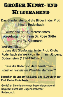 Samstag, 13.5. um 18:00 Uhr in der protestantischen Kirche Rodenbach.