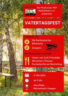 Der Musikverein 1957 Reichenbach e.V. veranstaltet wieder sein traditionelles Vatertagsfest. Dieses Jahr an der „Alten Mühle“ in Reichenbach-Steegen.