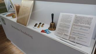 Darüber hinaus gab es die Möglichkeit den Plenarsaal des Bundestages bei einem virtuellen Rundgang zu erleben. Oder wer gerne selbst einmal am Redepult stehen wollte, dafür gab es eine Fotowand inklusive dem vorgenannten Objekt, wo man seine eigenen Fotos machen konnte.
