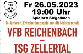 19:00 Uhr, VfB – TSG Zellertal (B-Junioren, Entscheidungsspiel um die Meisterschaft, Spielort: Siegelbach)
