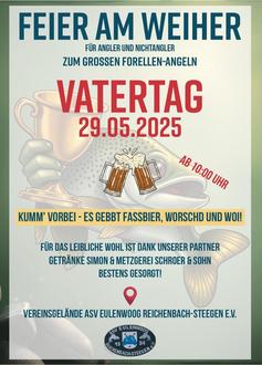 Am Vatertag veranstalten wir ein Vatertagsfest an unserem schönen Gewässer in Reichenbach-Steegen.