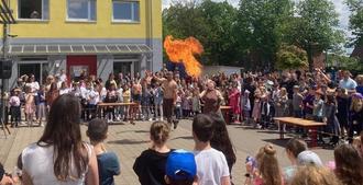 Ansonsten gab es Gaukeleien, mittelalterliche Tänze, Musik des Schulorchesters, eine Tombola, Schwertkämpfe und als Höhepunkt zwei Feuerspucker zu erleben. Für das leibliche Wohl war ebenfalls ausreichend vom Förderverein gesorgt.