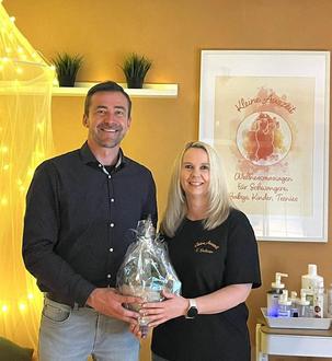 Ortsbürgermeister Markus Schick mit Silke Bertram
